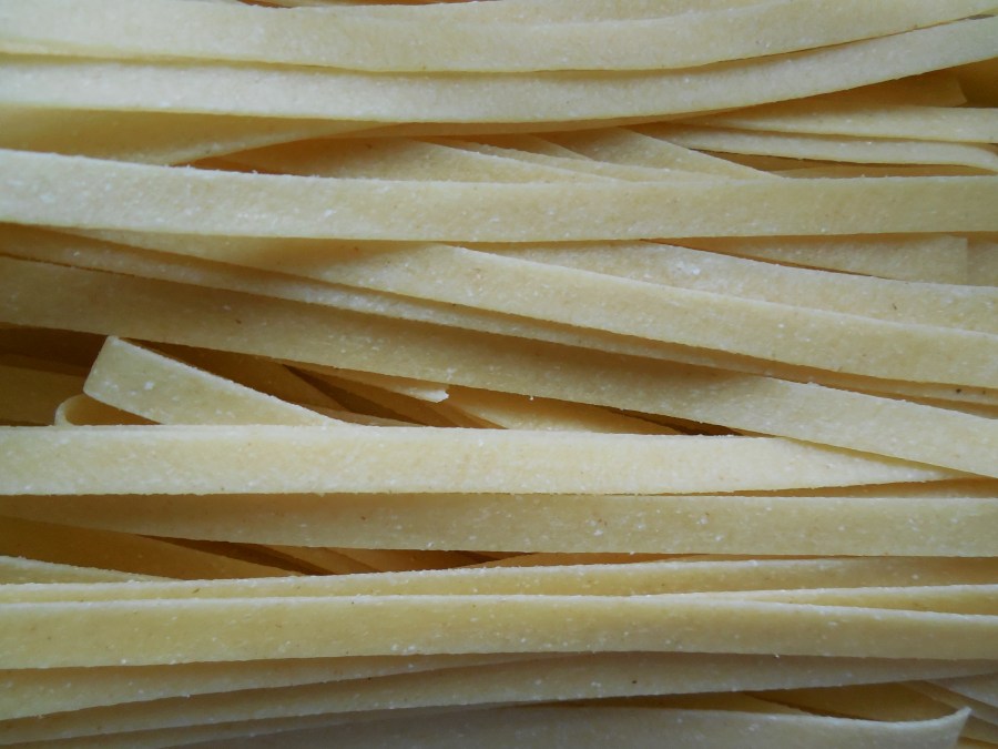 Let dry for thirty minutes or so, then gently remove the noodles and place in a airtight container. They will keep in the fridge for three or four days. Or if you like, gently remove the noodles and drop straight into a pot of boiling water. Insert into mouth. As I gift pasta from time to time, the first question everyone asks is how long to cook it (after first expressing amazement, extreme gratefulness, embarrassing praise, etc.). The answer is a resounding, “I don’t know.”, since every batch turns out a bit differently – the size of the egg, the moisture content of the flour, hell even the relative humidity in your fridge can affect it. If you don’t know how to boil and test noodles… Boil until they’re done. Or I can be more gracious and advise you to cook them to your preferred level of al dente-ness. Fresh pasta will cook faster than dried though, so keep an eye on it.