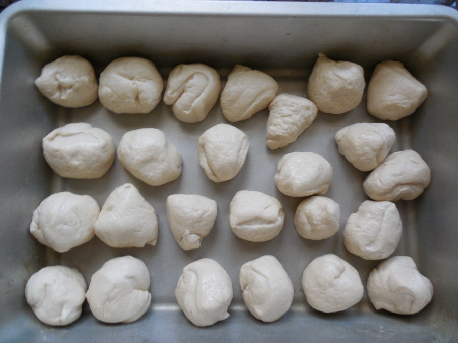 Then I divide it into twenty four little dough balls, because even though I’ve never made calzones before, I’m a cocky ass and decide to make mini-calzones. Let the dough balls rise for an additional 15 minutes.