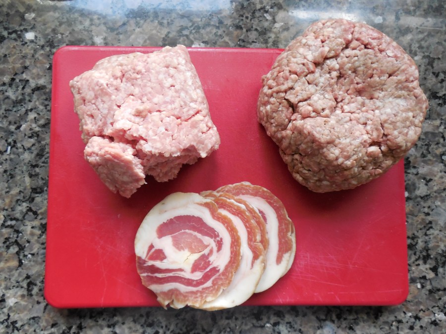 What we’re used to as far as meat sauce goes is usually a medium-thick tomato sauce with meat in it – this is far more complex, and far less tomato-y. The meats are: