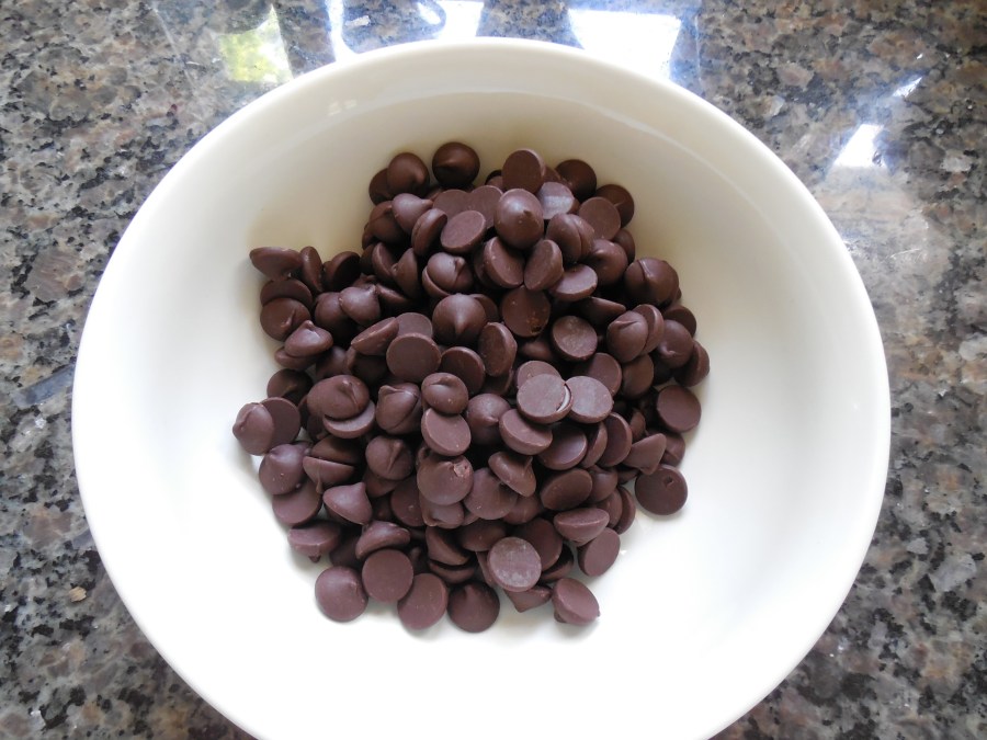 (Of course all chocolate recipes call for 8 oz. or 12 oz., and chocolate chips come in 10 oz. bags only, requiring me to eat my way down to 8 oz.)