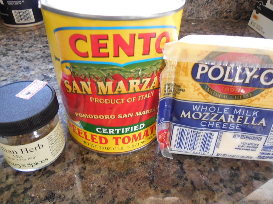 With this style of pizza, the tomatoes are the star of the show, so we go straight to San Marzano tomatoes imported from Italy. They are widely recognized as the best canned tomatoes. One large can of whole plums and their juices get crushed by hand (squish! squish! go the hearts of my enemies) with just a sprinkle of Italian Seasoning. No onions, garlic, or cooking. Another quirk of the Trenton style is that, like with Chicago Deep Dish, the cheese goes on the bottom. The tomatoes act as toppings, not as a sauce. The crust gets topped with one cup of shredded whole-milk mozzarella (which I’m delighted to find at a reasonable price at Walmart – before it was Whole Paycheck or nothing. Get with the program, Kroger!) (Fresh mozzarella will have too much liquid that, when combined with the tomatoes would result in a soggy mess.) Then the tomatoes get just kind of glopped on here and there: