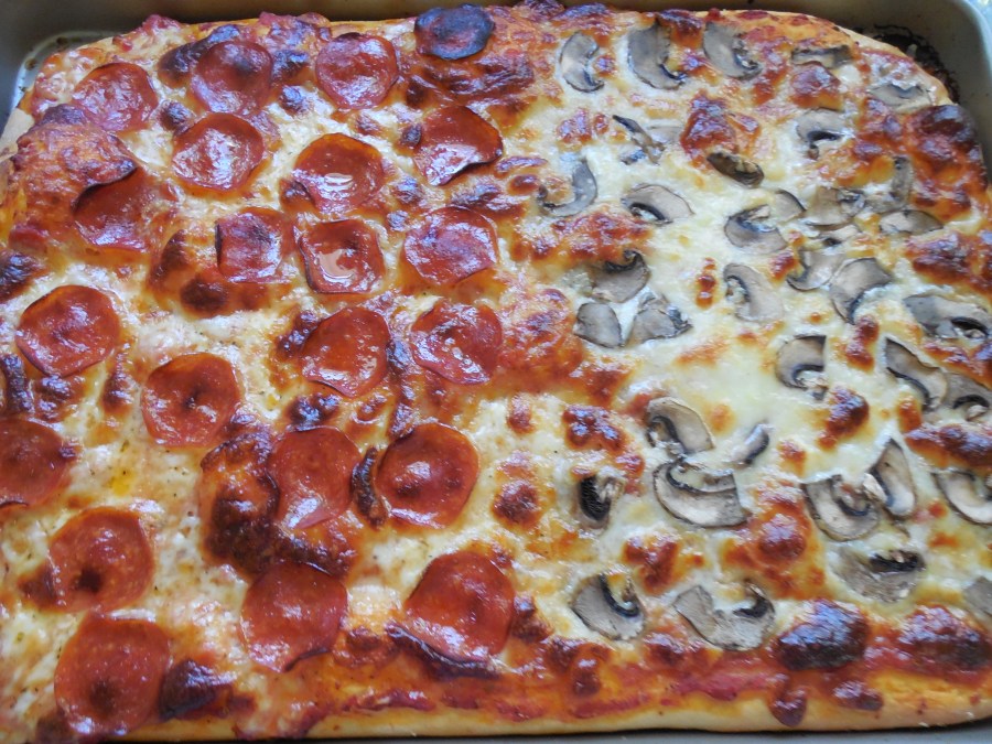 You could have used the time as an opportunity to blog. Your computer chair is very squeaky, which would explain any strange noises. Your pets will always manage to be in the same room as you, like for protection, even though they are both profoundly deaf at this point. Remember that big gorgeous Sicilian Pizza you made? Tell us a little about that.