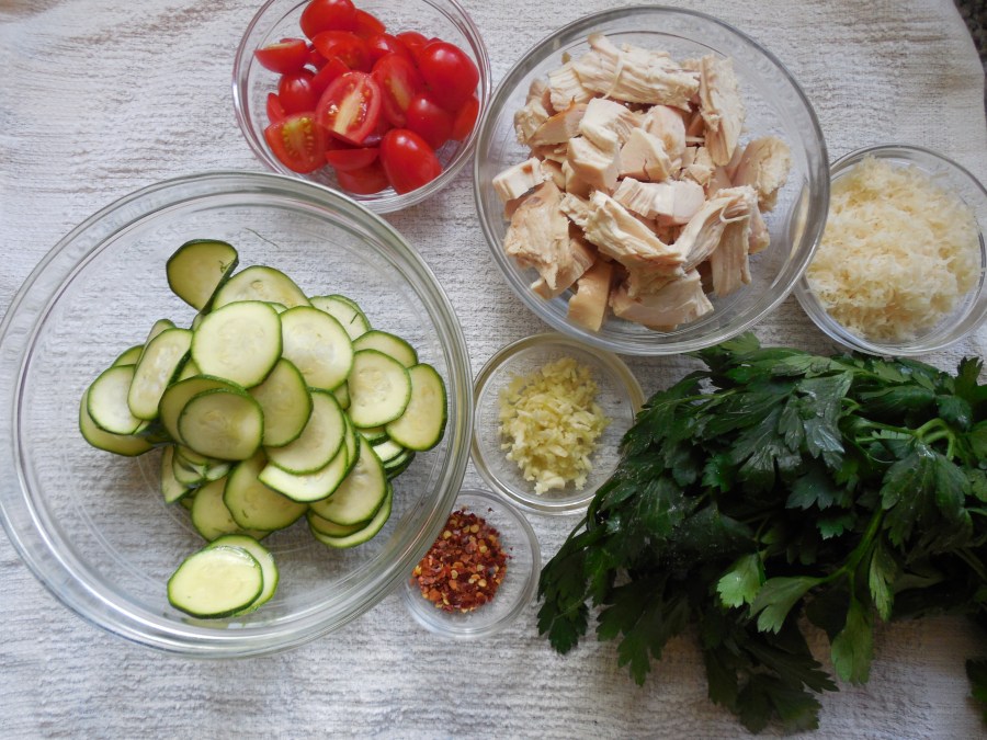 The objective was a one-pot pasta with fettuccine, chicken, zucchini, tomatoes, a lot of heat, and a broth thickened with grated parmigiano-reggiano. The good stuff. The expensive stuff.