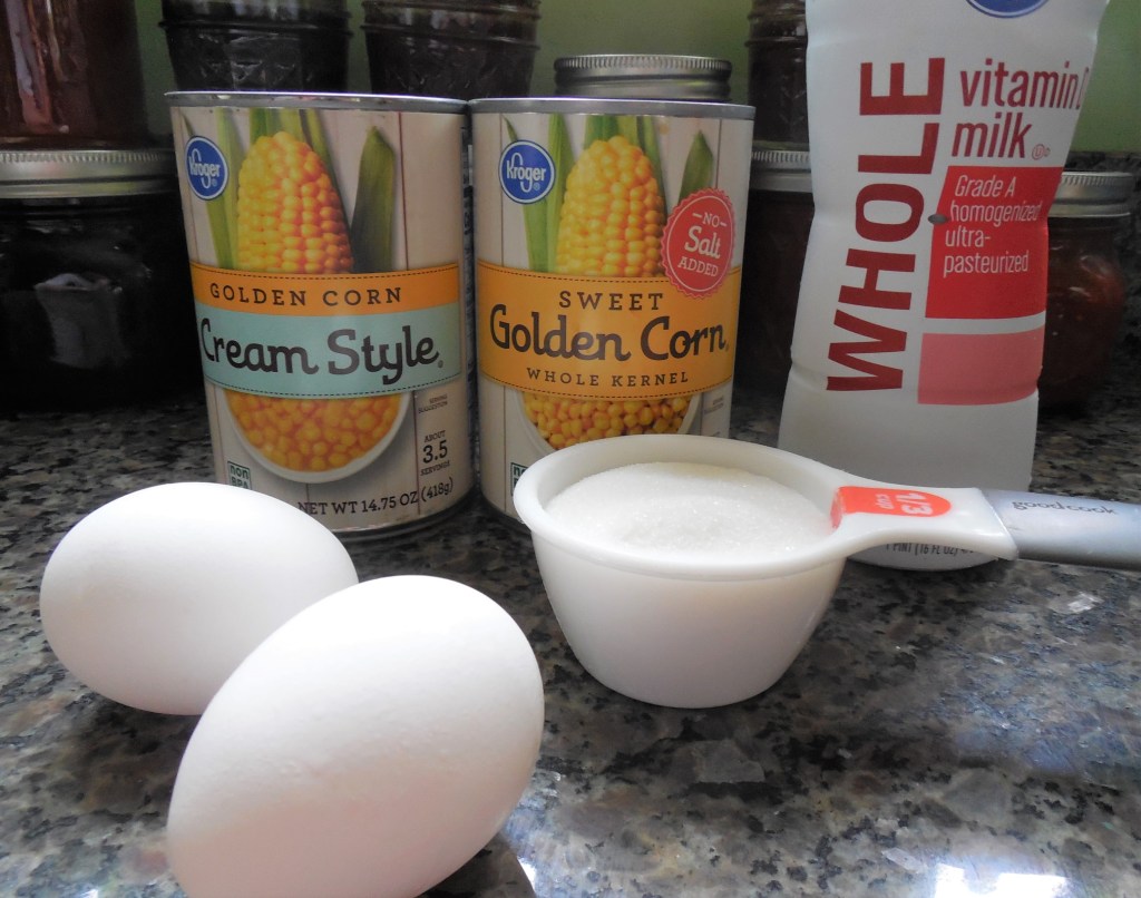 I’d also finally, finally like to beat Andrew Rea (Binging With Babish) to the punch when it comes to a pop-culture cooking thingie. I did Pizza In A Cup from The Jerk long before he did, but due to laziness, I never wrote it up. And it was impressive – I make three versions. My mother kindly shared her corn puddin’ recipe with me, so here goes:
