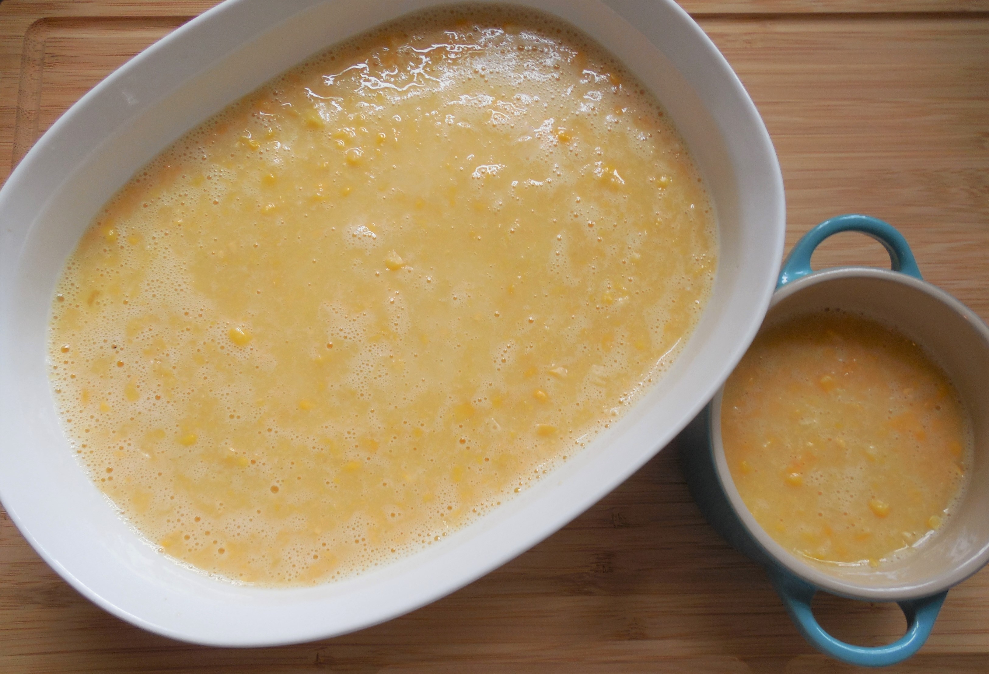 I’d also finally, finally like to beat Andrew Rea (Binging With Babish) to the punch when it comes to a pop-culture cooking thingie. I did Pizza In A Cup from The Jerk long before he did, but due to laziness, I never wrote it up. And it was impressive – I make three versions. My mother kindly shared her corn puddin’ recipe with me, so here goes: